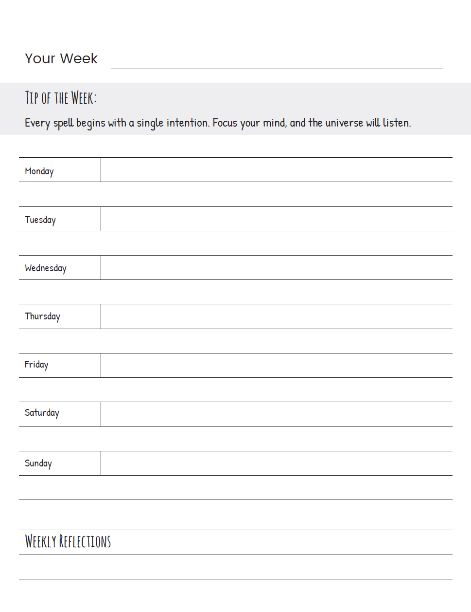 As if navigating our days isn’t challenging enough, the planner’s latter pages offer practical and magical advice on Love, Friendship, and Schooling. Think of it as your mini guidebook for life’s everyday dilemmas.