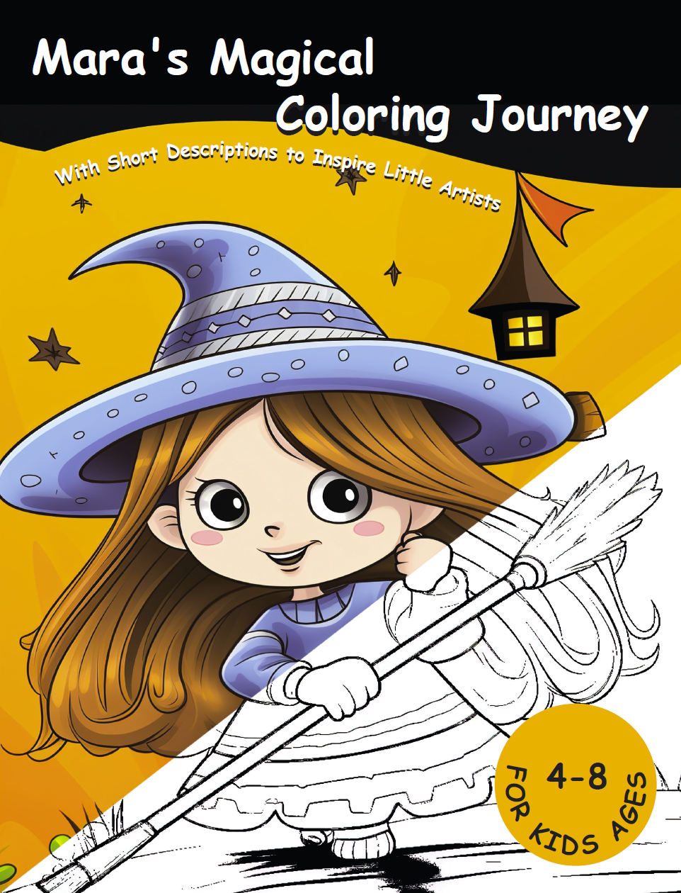 Hey there, lovely souls and aspiring artists! It’s Lily Adams, and I’m absolutely delighted to introduce something that’s been twinkling in my mind and is now ready to sparkle in your life. Allow me to present “Mara’s Magical Coloring Journey,” a coloring book that is so much more than just pages to color. But before we hop onto our broomsticks and soar into Mara’s enchanting world, let’s talk about what makes this book an absolute treasure for your little artists.