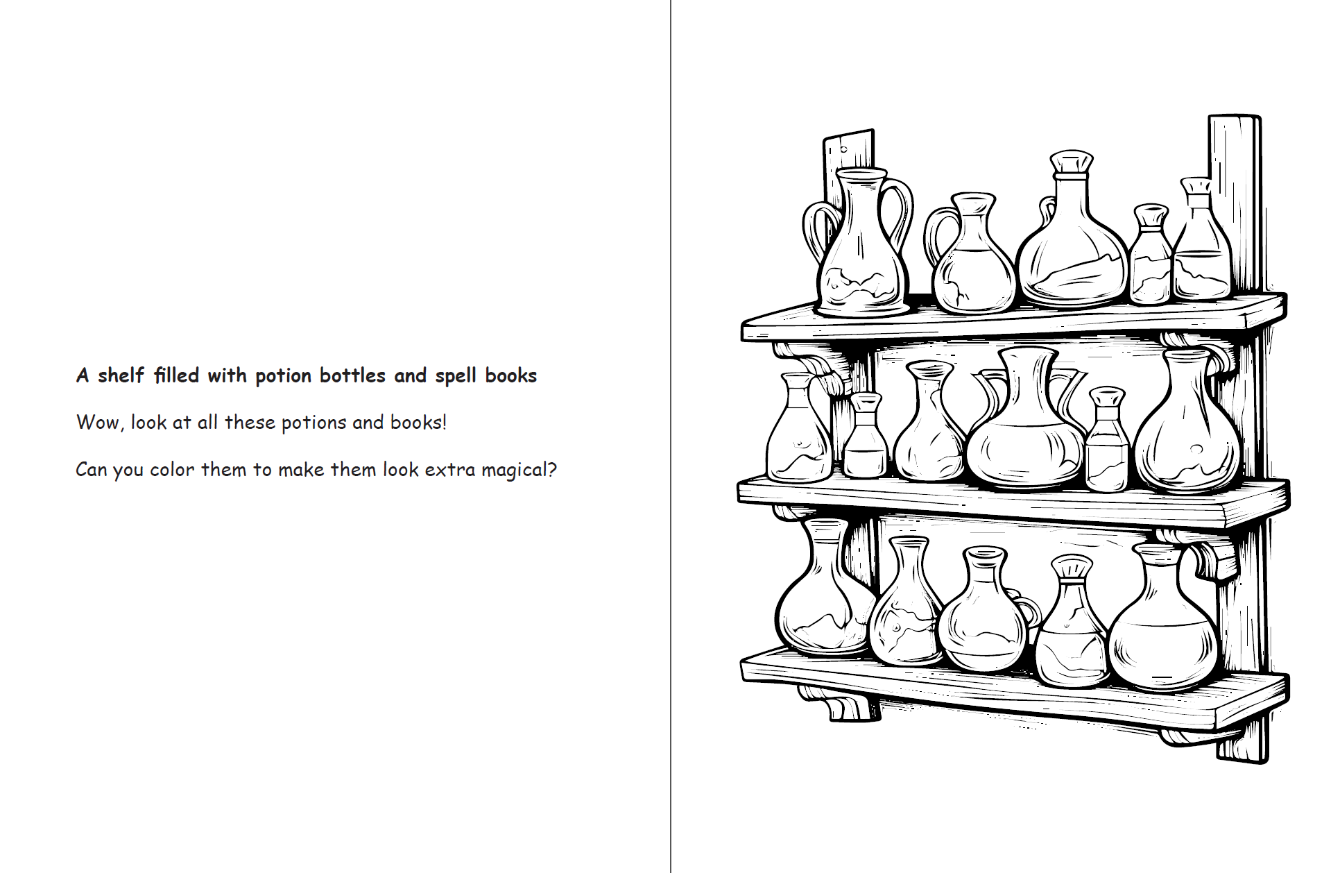The book is cleverly divided into two awe-inspiring parts. The first part, “Tools of Wonder: Mara’s Magical Items,” takes your young artists on a tour of Mara’s magical arsenal—complete with 12 stunning illustrations and their accompanying descriptions. Imagine coloring glowing potions and ancient spell books! The second part whisks you away to the heartwarming and sometimes challenging life of Mara, the witch with a heart of gold.